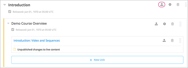 To publish all new and changed units in a section, select the Publish icon in the box for the section.