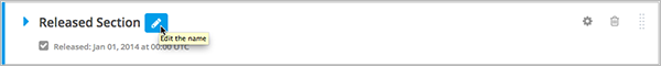 Select the Edit icon next to the section name. The name field becomes editable. Enter the new name, and then tab or click outside of the field to save the name.