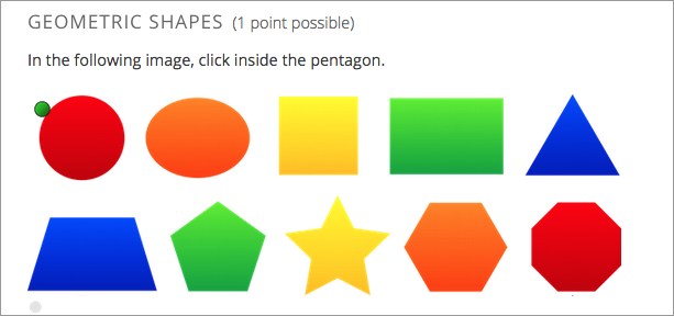 In an image mapped input problem, also known as a “pointing on a picture” problem, students click inside a defined region in an image. You define this region by including coordinates in the body of the problem.