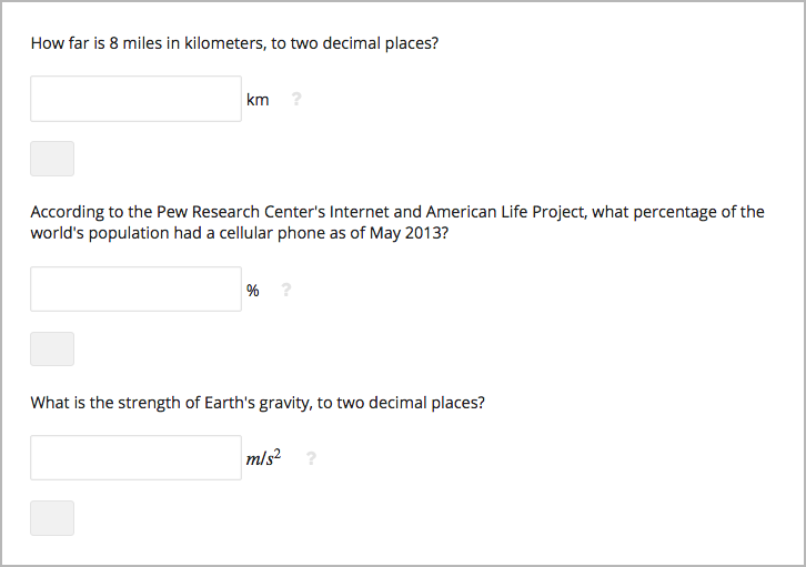 You might want to include a word, phrase, or sentence after the response field in a numerical input problem to help guide your students or resolve ambiguity.