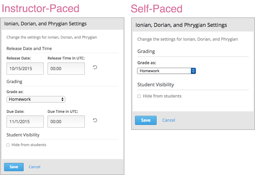 This topic describes the difference between instructor-paced and self-paced courses.
